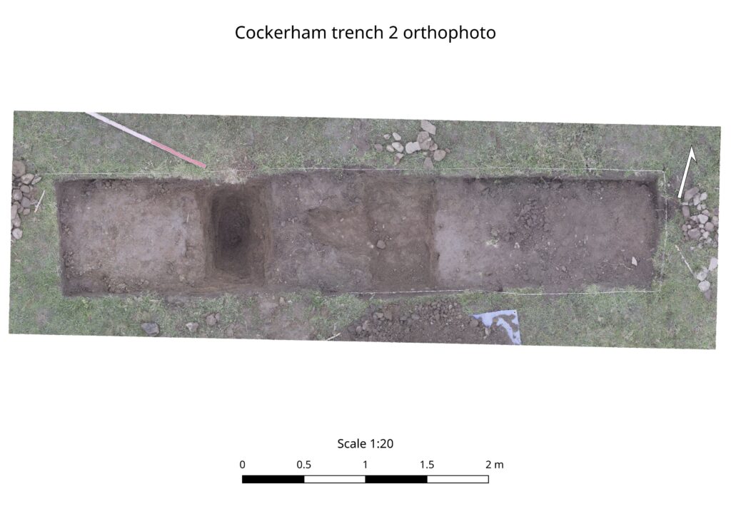 Trench 2 was favourite for revealing any discontinuity but nothing was uncovered. John has produced an orthophoto of this trench – shown below.