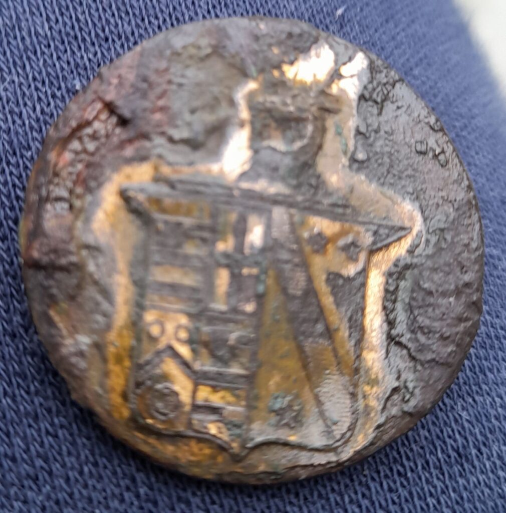 Helen took the opportunity to metal detect on the site and came up with a button complete with crest.