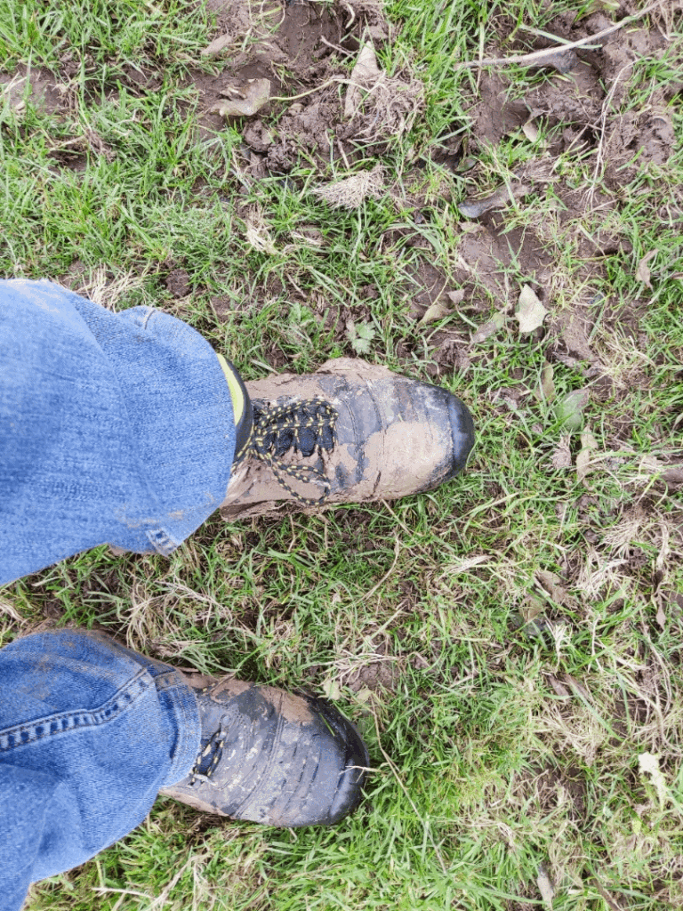 Trench 3 descended onto clay layers at about 0.6m. Shown below on my boots the remnants of trying to dig into the clay at 1.2m
